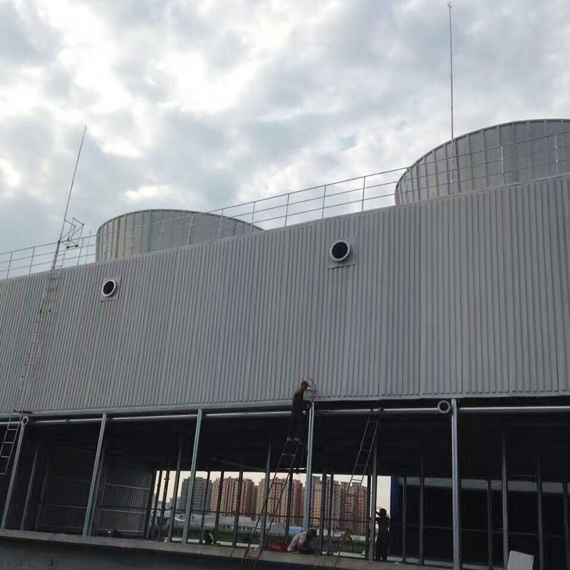 本系列方形逆流式冷却塔采用逆流式气热交换技术,使冷空气从冷却塔底部进风,逆流往上进入填料层,实现热交换带着热量。主体采用全钢结构,玻璃钢护板,塔体设检修扶梯供塔顶设备的正常维护管理。采用S波纹填料,改性PVC材料,特殊构造的流水膜以扩散淋水面积;通过喷淋管道和喷头散溅式的布水方式,实现布水均匀,加大散热量,增强冷却效果。